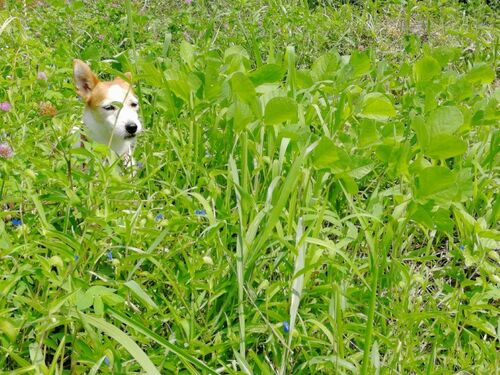 今日も暑い一日でした。 夕暮れから風が涼しくなり、 ほっと一息ついています。 連日の暑さで、 夏バテぎみのハーブさんたちですが。 木々がほどよく影をつくる場所や、 草のグランドカバーのある場所では、 暑さに負けず元気に花を咲かせています。 それに…